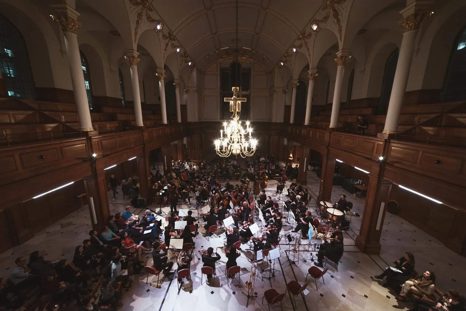 For this concert the orchestra ranks swelled to the largest size to date, crowding every nook of the dimly lit church of St Andrew's Holborn. Completed in 1909, Mahler never saw his 9th symphony performed. It is considered by many the last great symphony of the germanic tradition and it presents themes and schemes that somehow seem to both summarise and depart from 250 years of established composing practice.